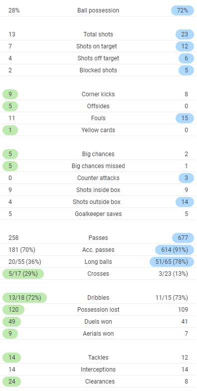 Full time post match stats Lincoln on the left, Liverpool on the right