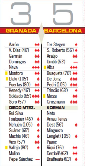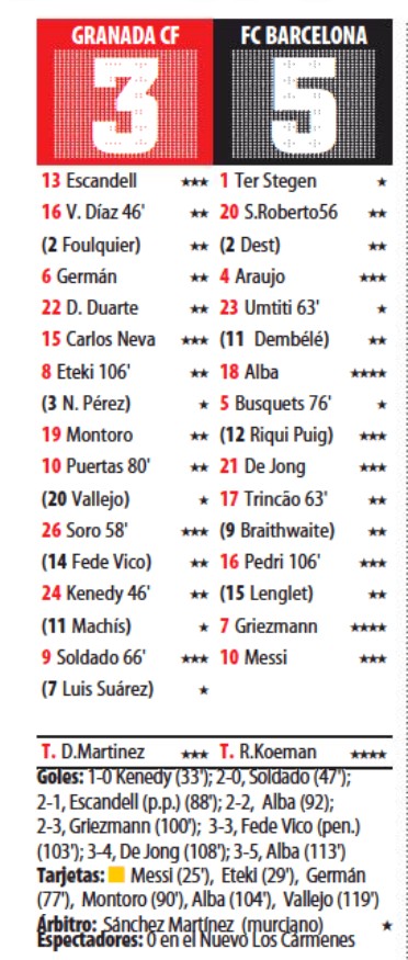 Sport player ratings Granada-Barca Copa del Rey February 2021