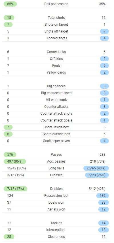 Full time post match stats Arsenal 3-1 West Bromwich Albion for comparison