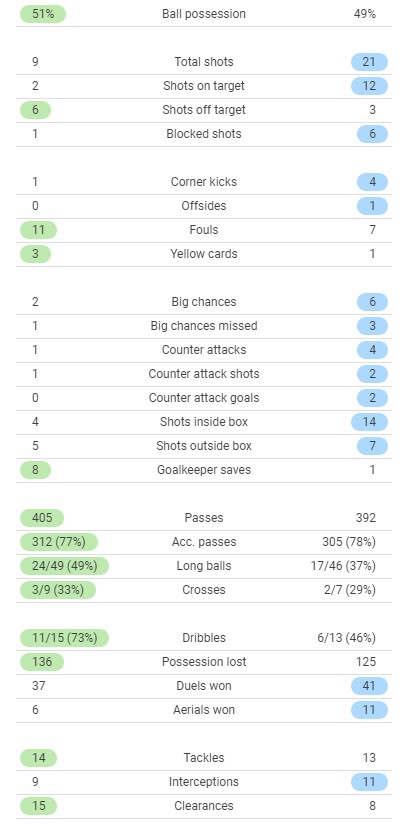 Leeds vs Arsenal 1-4 Match Stats for comparison