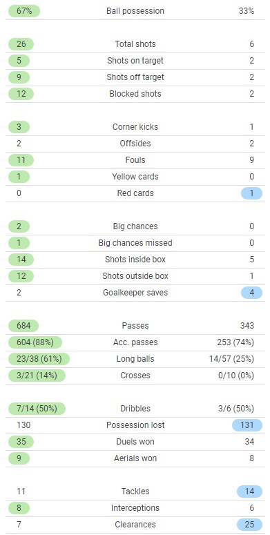 Chelsea vs West Ham 1-0 Match Stats for comparison