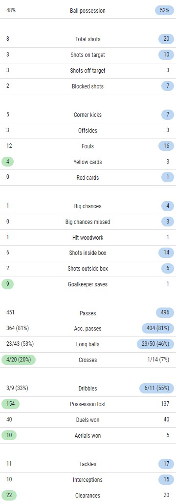 Fulham vs Chelsea 2-1 Match Stats for comparison