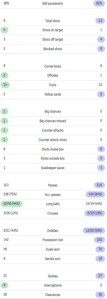 Wolves vs Chelsea 1-0 Match Stats for comparison
