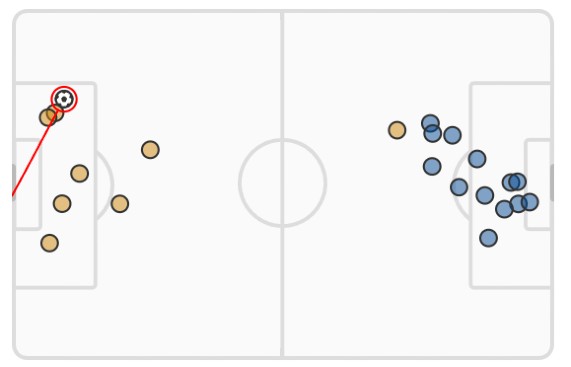 1-0 Matheus Nunes goal v Chelsea xG 0.04