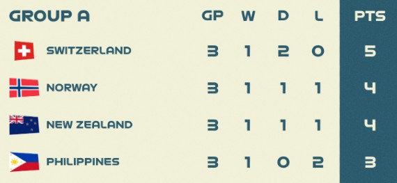 The Swiss qualified as winners of Group A and managed to do so without conceding a single goal. Hosts New Zealand had stunned Norway in the tournament opener but their subsequent shock loss to the Philippines made the equation relatively simple for the Swiss in their final game- avoid defeat and progress to the next round. And that’s precisely what they did with a 0-0 shutout, and Norway’s 6-0 triumph over the Philippines saw them qualify ahead of the hosts on goal difference.