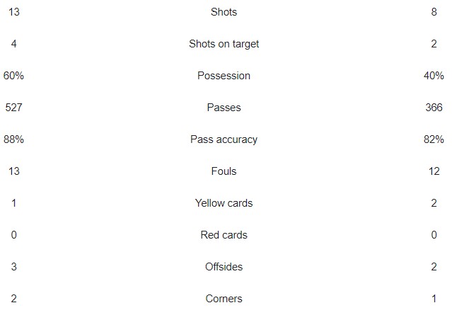 The biggest chances for either side apart from the goal went to Ben White (16th minute) and Coman (90th minute)