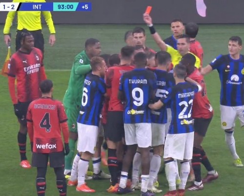 Dumfries vs Hernandez fight | Red cards in Milan v Inter 2024