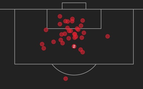 Interestingly, this was Havertz’s 34th PL goal (Arsenal + Chelsea combined), but his first league goal scored from outside the box (see the shots map of his goals so far below)