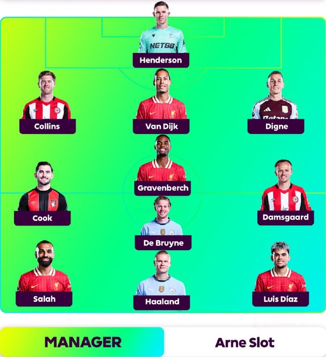 Shearer Week 3 TOTW: Henderson, Digne, Van Dijk, Collins, Darmsgaard, Gravenberch, De Bruyne, Cook, Diaz, Salah, Haaland