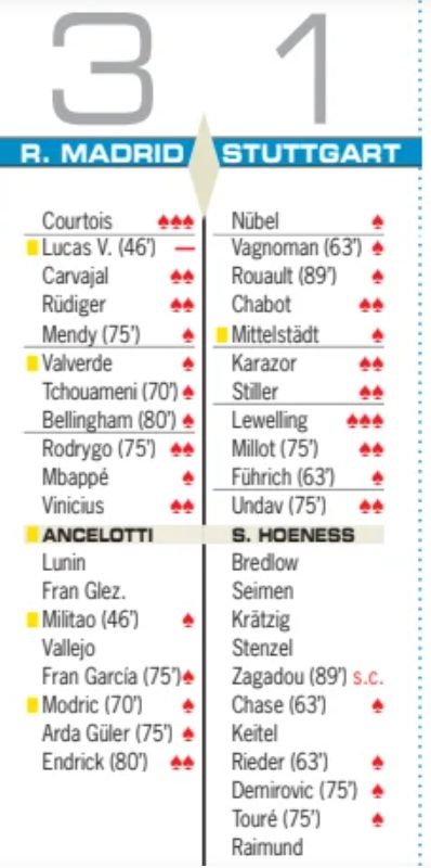 Diario AS Spanish newspaper player ratings Real Madrid vs VfB Stuttgart 3-1