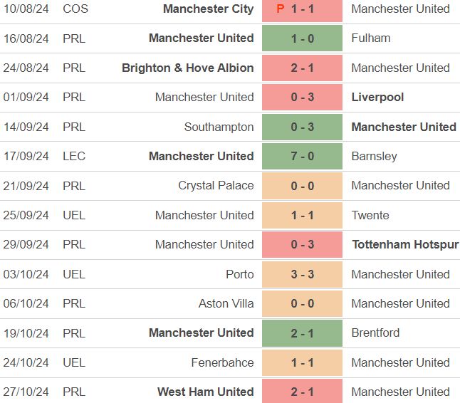 Ten Hag MUFC results for 2024-2025 season before sacking