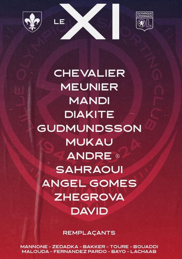 Chevalier; Meunier (Toure 85′), Diakite, Mandi, Gudmundsson; Andre, Mukau (Bayo 81′); Zhegrova (Bakker 81′), Gomes (Bouaddi 70′), Sahraoui (Fernandez-Pardo 70′); David