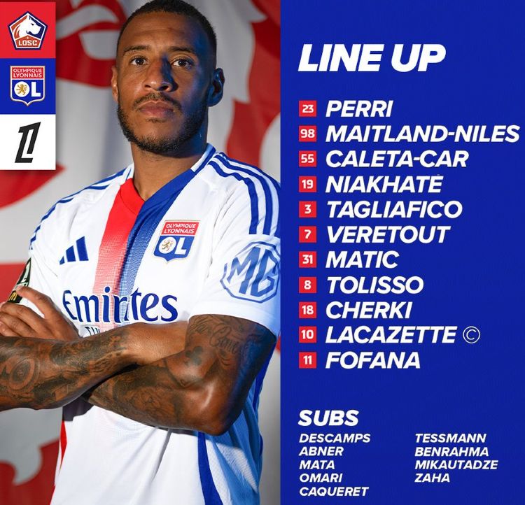 Lille OSC vs Olympique Lyonnais starting lineups and subs 2024/25