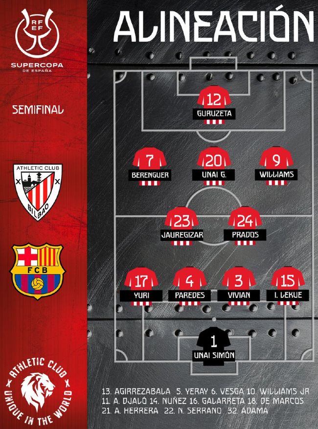 Athletic Bilbao vs FC Barcelona starting lineups January 2025