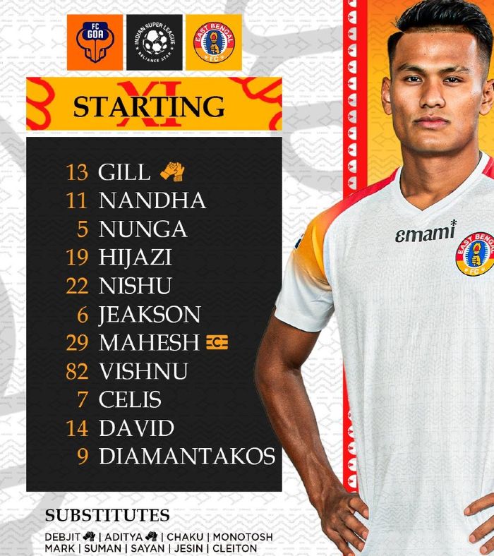 FC Goa vs East Bengal January 2025 starting lineups and substitutes