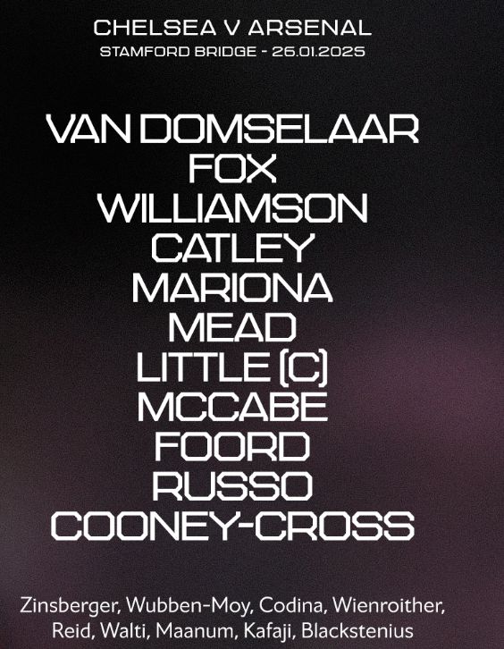 Chelsea FC Women vs Arsenal WFC starting lineups and substitutes WSL 2025 January