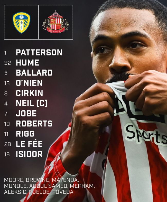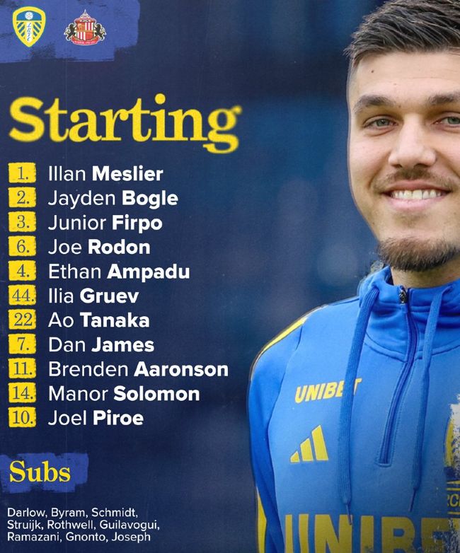 Leeds United F.C. vs Sunderland A.F.C. starting lineups and subs EFL Championship 2025