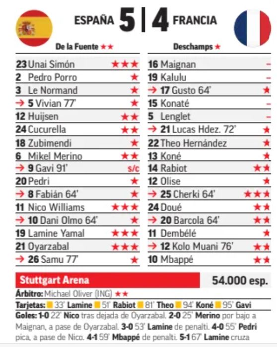 They also thought that Zubimendi, heavily linked to Arsenal, was the weakest of Spain’s midfielders (he got only 1 star)