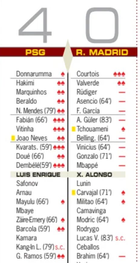 Diario AS player ratings Paris SG vs Real Madrid Club World Cup 2025