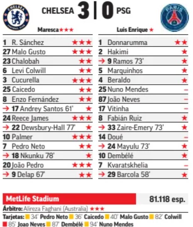 Diario AS Club WC final player ratings for Chelsea v PSG 2025