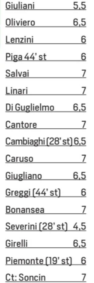 Finally, we come to Italian newspaper CdS, and they again highlighted Severini’s negative impact off the bench, with a 4.5 (Italian papers don’t usually give out poor ratings easily)