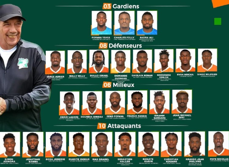 Here is a look at the official jersey numbers for Ivory Coast (Cote d’Ivoire)’s 27 member squad for AFCON 2024 (technically the Africa Cup of Nations 2023 tournament, but being held in Jan/Feb 2024)