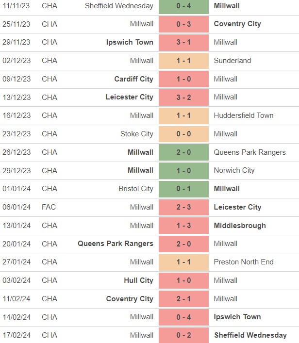 Here is a look at all the matches managed by Joe Edwards at Millwall during the current 23/24 season. Edwards was appointed as MFC manager in November but was sacked in February after just 19 games in charge. Interestingly, both his first and last games as Millwall manager were against SWFC, with differing results!